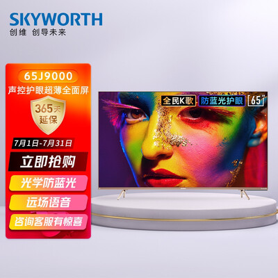 创维65J9000超薄金属机身,超窄边框屏幕占比大,语音导航准确,32G的机身内存,唱歌玩游戏都可以游刃有余画面转换流畅,对比其它电视清晰度要高很多,画面清晰色彩饱满。J9000外观还是非常漂亮的,反应速度快,色彩非常不错,颜色鲜艳,清晰度相当高,音质也非常棒,安装师傅水平不错,语音使用方便外形外观:外观大气,看起来高大上,运行速度:链接速度很快,很远都听的见屏幕音效:很有立体感,功能效果:各方面用起来很方便,尤其是语音呼叫和运行速度,?