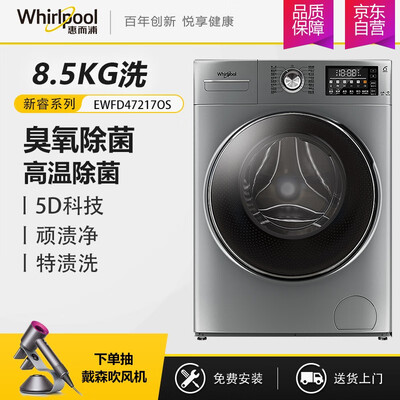 品牌:; 商品名称:惠而浦EWFD47217OS; 商品编号:100000209666; 商品毛重:76.0kg; 商品产地:中国大陆; 能效等级:一级能效; 类型:滚筒; 高度:85.1-90cm; 宽度:55.1-60cm; 深度:55.1-60cm; 洗涤容量:8.1-8.9kg; 排水类型:上排水; 电机类型:变频; 颜色:银色;