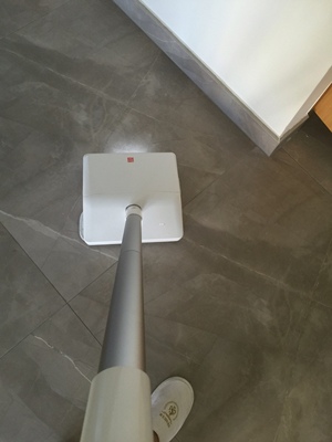 单纯拖地电量一个多小时没问题。墙边需要人工处理一下灰尘,吸尘器侧面有风会吹走灰尘,