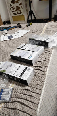 物流速度很快,临近过年了确实都不容易,相比下我的电视就得年后去了。回归正题,到手后就上手安装了,得有2个小时,不懂的也及时安排技术人员指导了,非常感谢,宝贝是父亲想要的,从小到大就爱唱歌,可能普通话不标准,节奏也有点问题,但毫不怯场,声音洪亮,只能偷偷调低麦克风的声音了,哈,随着年龄渐长,儿时的年味愈发淡了。正好买了这套设备,欢欢喜喜,热热闹闹,过个好年。亮几嗓子,释放胸中闷气,呼朋唤友,团团圆圆过大年!咳咳,走远了,安装相对简单,音质圆润饱满。很满意的一次购物,后续会更新使用感受,最后,祝大家新年快乐,财源滚滚!ps.电视柜和新买的电视机还没到,走线凌乱,能逼死强迫症~