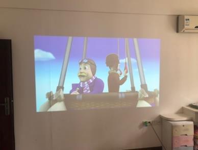 投影效果:第一个图是晚上,开着暗灯时,房顶投影的效果,躺着看就是爽!第二个图是晚上在室外不开灯的效果,距离比较近,更聚光,清晰度也更高。第三个图是刚收到货时,大中午在办公室墙壁上投影的效果,也能看,清晰度跟色调自然不能跟晚上比,而且距离需要更近才能看得清,不过也算不错了。最重要的是音响效果不错,音质很清晰,室外播放声音也足够大,晚上投影,机器也没有很吵闹的声音,属于可以让人安然入睡的工作音。电量能够看很久,连续工作大概五个小时是没有问题的。总之,可以满足日常所需了!物有所值!超赞!另外,幕布真是很大,完全用不了这么大的,干脆裁成两半,安放在两处位置,只需要移动机器,就可以随时观影了!棒棒哒!