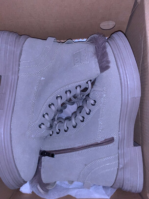 舒适度:鞋子外形不错,里面都是绒绒的,穿着脚也很暖和