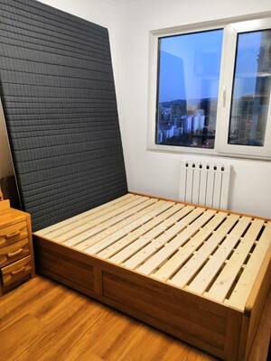 刚买回来,味有点大,过上两个月以后,让它好好散散气味再装,实木床看起来不错。