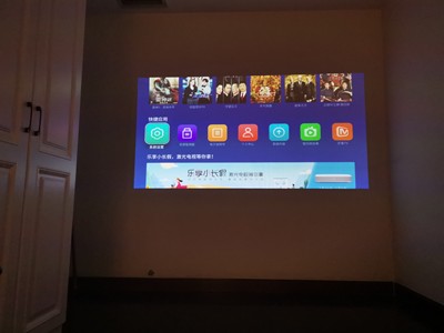 投影在不是浅黄色的墙纸上,晚上看看还是可以的,方便,喜欢侧投