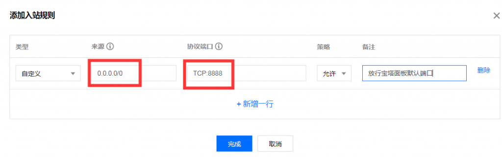 然后在“来源”这一栏填写0.0.0.0/0,表示所有IP均可登录这台腾讯云服务器,VPS小学生觉得大家应该都是动态IP吧,所以最好如图例填写。“协议端口”这一项填写TCP:8888,就放行8888端口了。注意其中的“:”是英文符号,别用中文输入法的“:”号。 腾讯云目前双十一秒杀活动进行中,国内云服务器88元/年,中国香港云服务器168元/年,性价比最高,错过再等一年,点此参加秒杀:腾讯云11.11 智惠上云 以上就是VPS小学生和您分享的“腾讯云服务器安装宝塔面板放行8888端口的设置教程”,希望对大家有所帮助,如果大家还有什么问题的话,欢迎在下面评论留言,VPS小学生知无不言!  关注VPS小学生的微信
