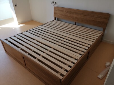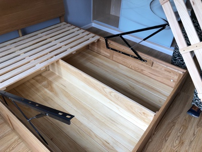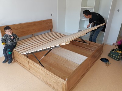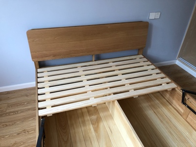 床的质量挺好,床头板厚实,储物空间也大,床板有木头清香,就是拉杆拉起来不好合上,得用很大力气,再轻点就好了,客服大豆服务很好,有问题能及时关注解决,很棒!