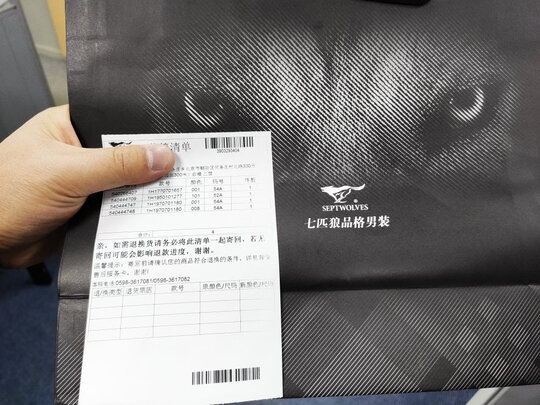 这是第一次买的那件立领羽绒服,收到货发现质量款式都不错,直接导致了我又买了四件。质量没的说,衣服用料做工都不错,个别地方有线头但是瑕不掩瑜。非常喜欢非常成功的一次购物,之前先买了一件,寄到之后媳妇说质量和款式都不错,后来看到双十一那天活动五折,比之前那件内购价还便宜,就一下子买了四件。寄到公司,同事看见了还以为我批发衣服呢。七匹狼品牌虽然有些老气,也不像当年那样如日中天了,但质量好啊,价格美丽,确实很棒的一次购物。买回来送家人,号码不合适联系,也很快解决换号,还能更换邮寄地址。商家很棒,点个赞!