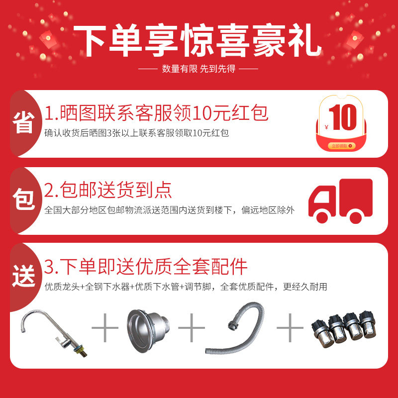 豁然开朗水槽有优惠了,大家可以去店铺领取优惠券。 至于豁然开朗水槽怎么样材质分析,五大谎言别中招。今天小编就此采访几位消费者,下面是用户对豁然开朗旗舰店的“加厚商用不锈钢水池解冻池洗手池洗菜洗碗池学校食堂饭店厨房水槽”质量的评价