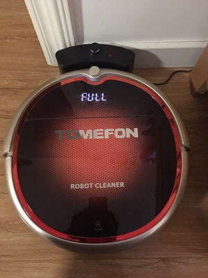 终于等到快递小哥的电话??,满心欢喜的跑步前进把它取回来。我闺女高兴的说:“妈妈咱家又多了一名成员。”她爸逗她说这是给奶奶买的新玩具:)。拆箱、验货、试机。新来乍到,地形不熟,可以理解,它一定会越来越聪明的!新机器储电不多,没一会就电量就耗尽了。可能离充电器有些远,半天没找到。我把它抱过去的@- @。拖地功能还没试,水箱看着好小,期待小身材能量…… 感谢萱草的耐心解答。很好??