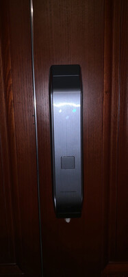 外形外观:推拉式门锁看着高大上,深灰色外观沉稳高级,隐藏式指纹识别一开始要适应一下位置,几乎用过两次后就熟练了。密码键盘不激活时候开不出来,看上去一体性很好。