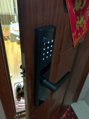 黑色镜面大气上档次,指纹识别灵敏,支持多种方式开锁。安装师傅很给力,老式的防盗门,各种改装,硬生生装了一个多小时。赞??。有一点小顾虑,指纹识别芯片是镜面的,很容易刮花高觉。谨防熊孩子谨防熊孩子谨防熊孩子,重要的事说三遍。