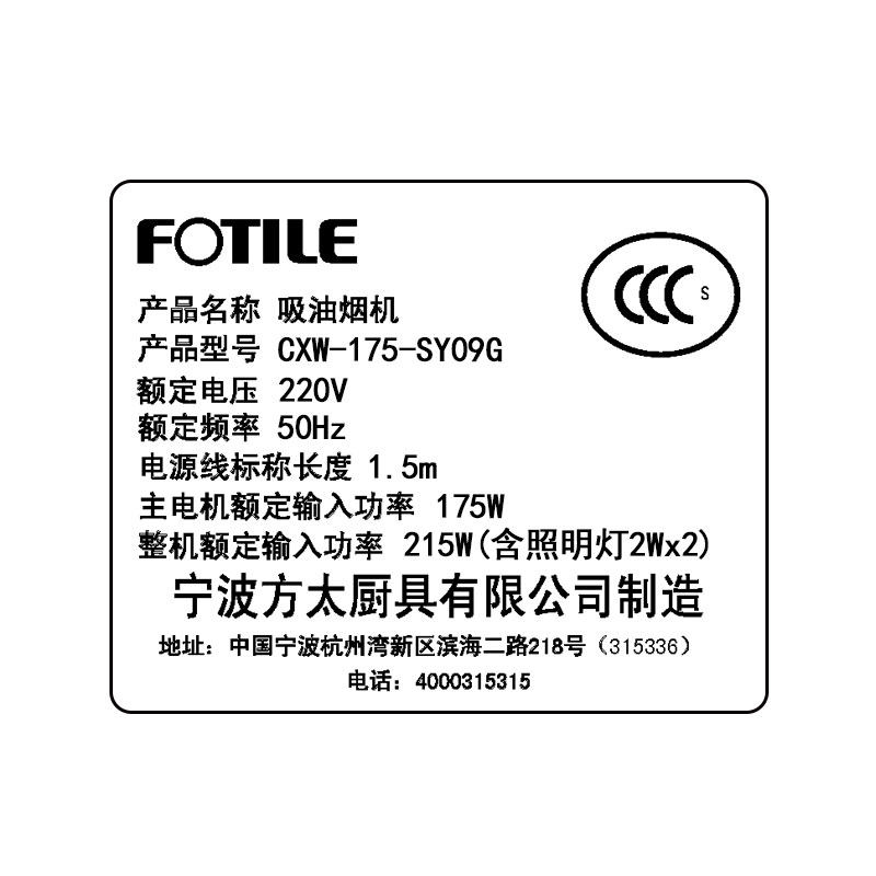 油烟机型号:SY09G