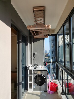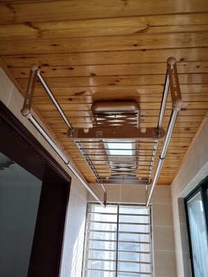 新房装修买的,价格比实体店优惠很多,安装很好,为了把阳台做成纯休闲区,选择安装在了阴台,地方有限,专门选了这款可伸缩晾衣杆的,已经安装好了,师傅服务得很到位,还很细心的教怎么用,物有所值的晾衣架,质量蛮好,值得信赖,希望可以用很长的时间!