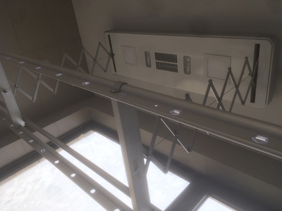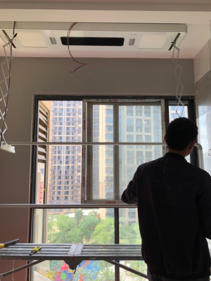 买了一周才有时间约师傅安装,师傅动作很利落,半个小时就全部装好了,我家阳台原本就有灯,衣架是装旁边,所以要从灯拉线过去,连上衣架以后,其实灯就没啥用了,建议要买的朋友原本的灯可以取消不用了,因为如果要衣架通电,原来的灯就要一直常开才行,衣架本身有led灯够用了