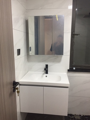 洗脸柜组合收到了,包装的很严实,柜子做工精细,喷涂细腻,,装起来也挺方便,赞一个双十一买的,外观很不错,送货师傅很仔细,每个包都打开看过确认签字很规范,安装叶师傅很及时,安装仔细态度很好,洗脸柜园角好看,但是靠墙一面门不能开,还是有点缺陷的,但总体还是挺满意的。