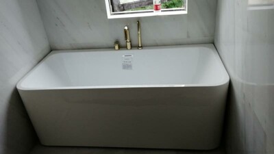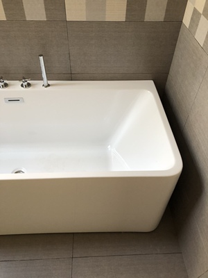 我购买浴缸的尺寸是1.5米的,还有些位置空余,应该买大一点的,款式风格都很贴合我家卫生间,虽然选小了,但是泡澡空间真心很大,家里人都很喜欢,起码款式设计上很特别。也使用了一段时间了,浴缸还是很洁白,搭配一起买的瀑布龙头很漂亮的,出水太有意思了,一遍瀑布一遍泡澡,别有体验,每天泡个热水澡超舒服