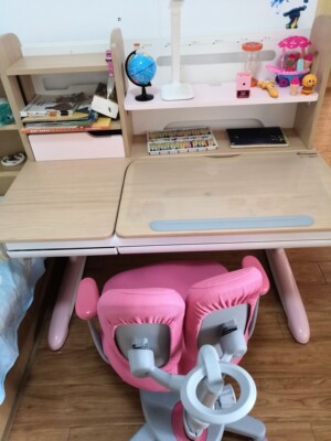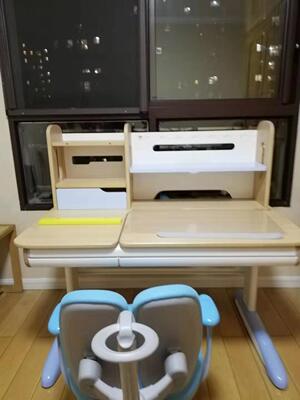 学习桌本身可以升降,适应小孩子到成人都可以使用。它的桌板可以倾斜,能在绘画、阅读、写字的时候,调整到最符合人体工学的倾斜角度度,桌面下装有制动装置,防止桌面下落,不夹手。桌面尺寸非常大,还有大型书架,长大后可以买台式电脑用,桌面下方有超大抽屉,让孩子养成整理文具的好习惯。桌腿有水平调整部件,让桌面维持水平状态。还有静音车轮,方便移动桌子的位置。配套的儿童学习椅,同样也支持升用来升降的配件,能保证百万次的重复使用。希望孩子从小有个好习惯。好姿势,有朋友需要会介绍。好品牌值得表扬。
