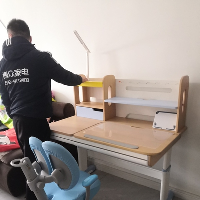 收到宝贝有一个星期了,一直没时间联系安排师傅上门安装,昨天联系安排师傅上门安装说要3到5天时间b才上门安装,结果今天师傅就联系我就,这不,一大早就来把书桌装好了,这速度,这效率杠杠滴,安装好了感觉非常棒,还有卖家送的惠普打印机也拿出来放到书桌上了,简直是绝配,太好了,我想孩子一定会很喜欢,也很感谢耐心和细心解答,康普乐这个牌子真没得说,一个字,太棒了!