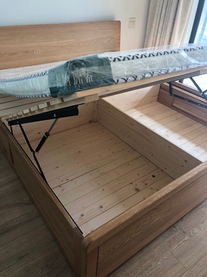 这个箱体床用料很扎实,气味也小,下面可以放东西节省了不少空间,躺上面没有异响,非常满意。