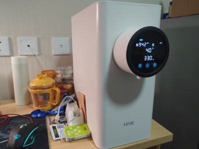 其实这个德国NHK反渗透净水器家用直饮台式小型自来水过滤加热一体饮水机可以的哈,老牌子了,质量是不错的,真心好用,40℃水温,150毫升刚好一杯,可以自动停水。这边接水,那边还可以做点别的事情。两不耽误。出水量大。我觉得挺好的。很喜欢。过滤后的水有点甜甜的,用到现在,总体是满意的。