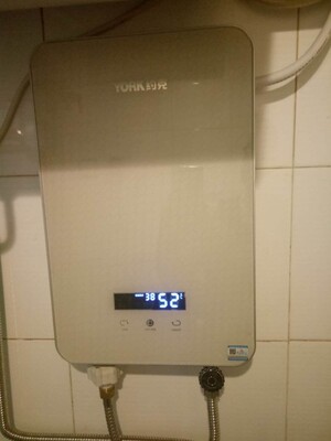 约克YK-DJ11-85即热式热水器真是名不虚传,我们连续洗浴多久都可以,38度恒温出水,水流量大,我们住在10层,水量很大没有任何问题,那边的房子很远,我们一般不会经常过去,储水式热水器不适合长期停滞储水,一方面长时间储水水就嗅了,另一方面对储水式热水器里面的镁棒伤害比较大,所以有像我们这种情况的,建议使用即热式热水器,约克热水器出水量大,水温很稳定,长时间洗浴都没有关系,真心不错!我们也是头一次使用即热式热水器,约克热水器,安全有保障,用得放心