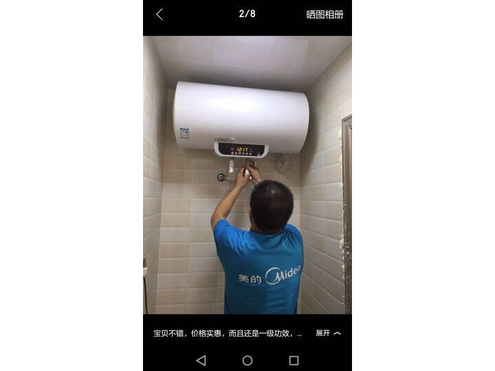 买的东西真的很好,第一天拍了,第二天上午就到货了,送货师傅帮我搬东西也非常小心,轻拿轻放,安装师傅下午就过来安装好了,效率很高,东西质量也很棒,装好了上水很快,烧水也很快,电源开着,两个加热器没多久水就达到可以洗澡的温度了,买的时候客服也很热心,有问必答,帮我把问题全部解决,在京东消费这么多次,每次都很满意,点赞!美的热水器送来了!很高大上!!样子是我喜欢的!要的80升的!这样一家子人都可以洗澡够用了!非常喜欢!热水器上午送到,下午安装的师傅就到了!非常快!安装的也很细心!!给个赞!!!美的公司也很负责!!一次很棒的购物!!很满意!!!