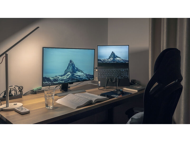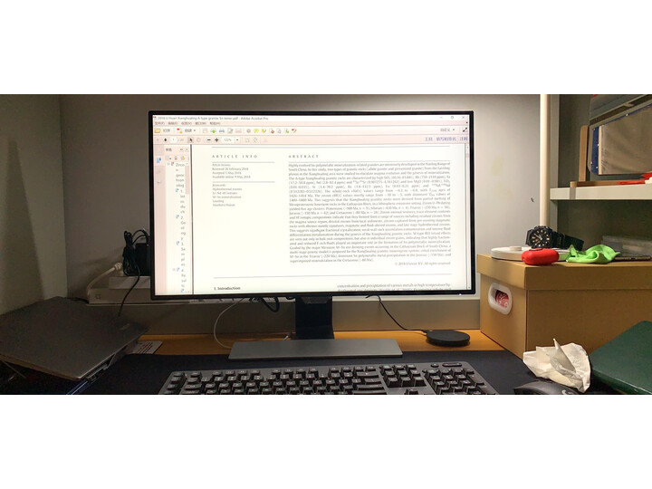 显示屏总体来说正好对我适合。配置是27寸,2K,IPS,内置音箱,最让我看中的是四边窄边框,因此外观很不错。色彩色准对比度之类的话,我可能对这些要求不高,但从使用感受来说应该是一块不错的屏幕。因为是27寸,所以整体重量还是有一点的。底座的长板看上去也是很和谐。