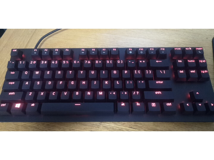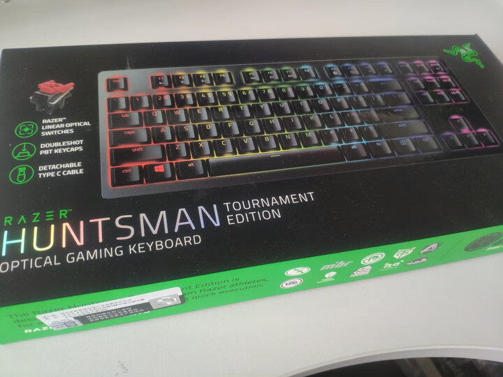 雷蛇新出的线性光轴(类红轴)之前用的是银轴谈一下个人感觉,两种轴体都为电竞而生,响应速度都非常快,一按就触发,之前没用过需要适应,不适合办公用。手感是银轴触底压力克数更低,行程更短,按底更硬。由于采用弹簧直上直下的结构,光轴回弹更快更贴手。按键声要大于银轴,主要声音发自于键帽触底及弹簧回弹时发出的噪音。舒适度:键帽摇晃度比银轴要大些,但不影响使用的稳定性。PBT材质耐磨耐油光生产成本更高,避免应打油而手滑造成的误操作。颜值:外号灯厂,灯光很漂亮,但由于PBT材质的原因透光率要低于ABS。面板是铝合金材质,边框采用了抛光倒角设计。键盘整体份量偏轻,底部带有防滑脚垫,可有效抑制键盘在使用中的位移。扩展性:采用分离式typec接口,原装编织线手感还可以。键帽采用标准十字排列后期可更具自己喜好更换。大品牌,87键,typec接口,线性轴,BPT键帽,彩色灯,真香!