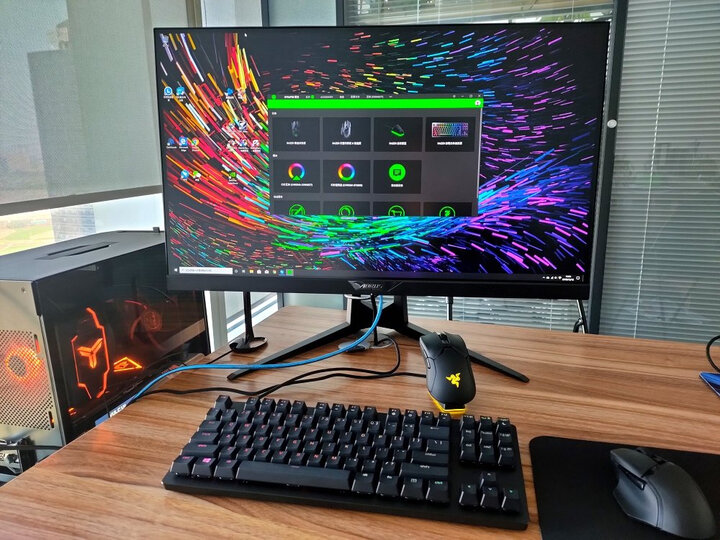 材质很高级,pbt键帽手感很涩,不打滑。键帽是双透的,razer头一次吧。光轴触发迅速,很省力。另外就是键盘很轻,配合type c线,方便出行。已经配合viper在用了。所谓的电竞套装吧。