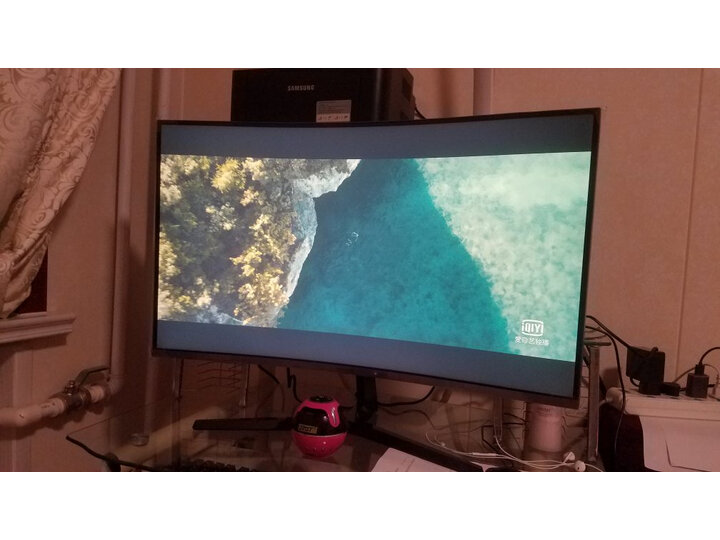 三星31,5英寸曲面屏显示器画质清晰边框窄低蓝光不刺激眼睛玩游戏超爽。