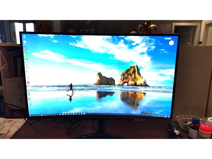 凌晨下单到取货13个小时,特别效率。屏幕亮度色彩都非常好,一米的桌子用27寸刚好,虽然31寸的应该会更爽一些,但相比我之前的Mac book pro 14寸屏我已经很满意了!观看起来很舒服,屏幕角度可以任意调换。跟笔记本完美兼容,合上笔记本,主屏就到大屏幕上了,屏幕自带音响,可调节声音大小。曲面屏弧度,两个人近距离观影不影响色彩,像看电视一样。货有所值,推荐!
