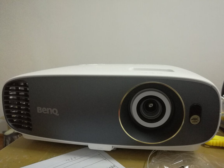 一直想买个投影仪,正好最便宜4K上市,第一时间预约了,第一批没抢到,总算第二批抢到了。简单用电脑连接测试了一下,总体不错,清晰,很满意,噪音也控制的不错,比之前1070+的噪音控制好很多。3D还没用测试,等高清播放器到手了再好好试一下。有的是开灯时候测试的,由于新房子还没好,幕布都没弄好,只能简单白墙测试一下,墙的下面还是有贴砖,所以有点花