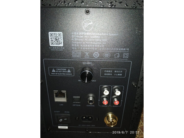 音箱外观真是漂亮,功能也多,wifi,光纤的音质最好,声场开阔,开声中低频突出,虽然功率只有80w,但开大音量就很震了,感觉声音太大了,遥控功能用着很方便
