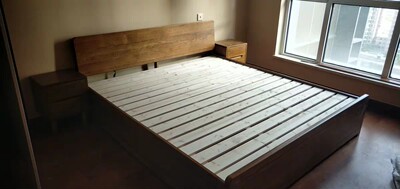 床收到了,实木家具没有什么味道,师傅送货入户安装,安装非常熟练,一会儿工夫就装好了,整体都满意,谢谢依贝的服务,耐心周到,五星好评