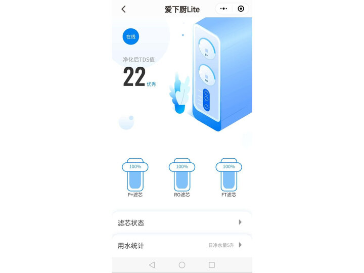 在APP功能当中,我们可以通过内置的在线滤网购买以及相关的产品咨询,来解决我们所需的产品和问题。