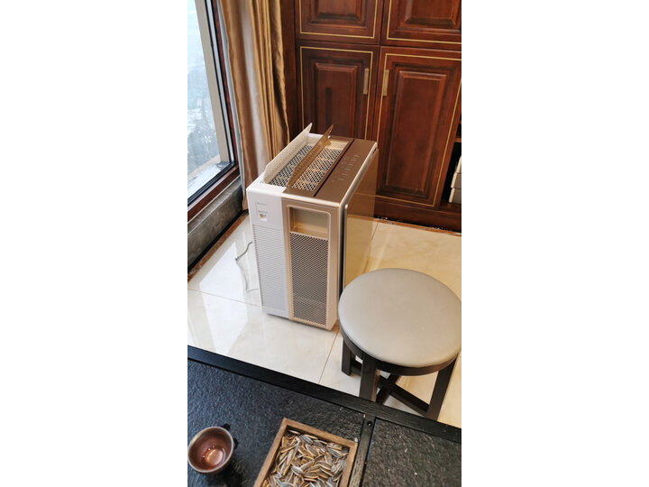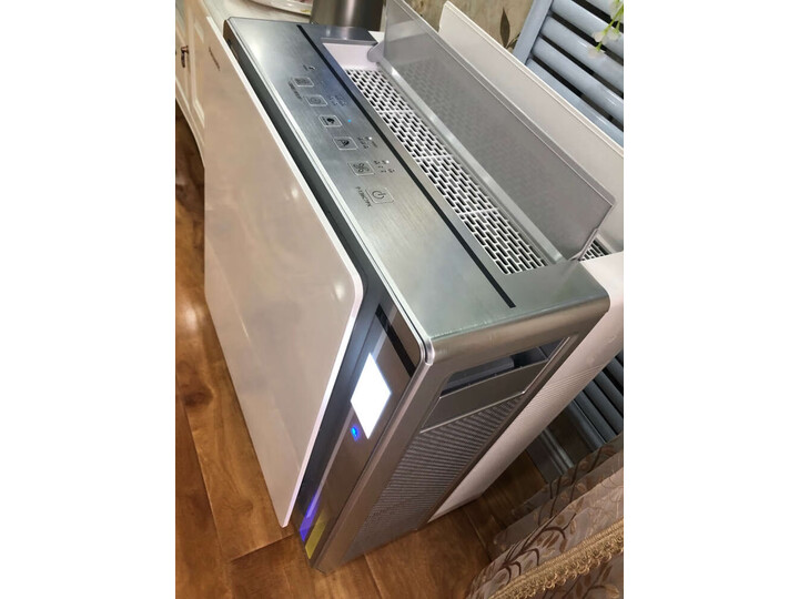 这款新品352X83系列,触控面板位于机器顶部前端区域,整体覆盖顶板,约为三分之一略多一些,并且触控操作区中间,配有一块近5英寸的液晶显示面板,便于我们家庭用户,在使用当中,查看到空气指数的条件。