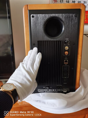 另外,整个音响的前装饰面板采用了哑光的材质,质感突出,低调庄重,搭配雅致木纹的箱体,让整个音响的质感提升了许多,能够很好地和用户的书架,桌面去融为一体,这不光是一件音响,更是一件艺术装置,一件能提升家装格调的出色装饰品。