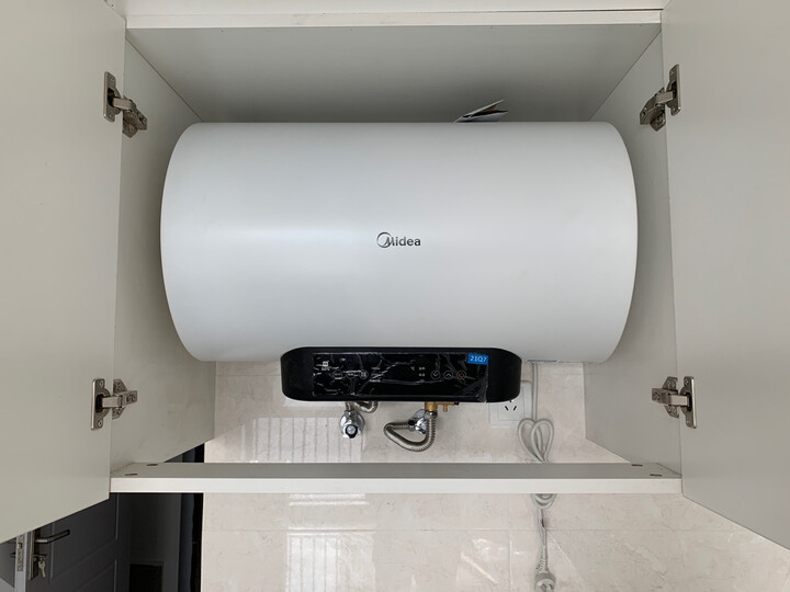 还没有正式使用,刚刚挂上,还不错,样式挺简约,特意选的50L担心太大了影响右侧开窗户,信赖美的,家里大部分的电器都是选的美的,很耐用,价格也很合适,赶上有活动直接就下单了,京东物流就是给力,来了立马就按上了,很好。外形外观:家里新装修,买了这款热水器。尺寸与我家预留的位置正和好。吊顶可以将大部分包在里面,非常美观,适合小型浴室配上我灰色瓷砖,整体都非常搭。号毫升应该满足我们一家三口的需求。具体省电不省电,出水量如何?要搬进去,再追评。