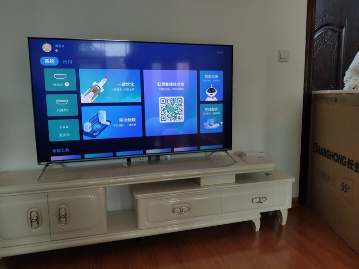 运行速度:很快开机两秒看了很多家,还是买了这个本来想买长虹55Q6K的,一分价钱一分货,永远不要怀疑这个理论,跟我的iPhone7一样薄第一次买长虹55Q6K电视,对比了一些选了这台最新款,内存大些运行流畅,43寸不大不小刚刚好,画面很清晰,音质也非常好,遥控操作简易,功能很多wifi投屏还能唱吧点歌,不要太爽了,希望能用个好几年吧,挺满意的。京东的物流就是快,自营比较放心,快递小哥都不错。电视已收到外观比想象中要好,电视非常清晰,色彩也很好很满意,毕竟长虹55Q6K电视质量排行前十名,二十多年的老牌子,值得信赖,再加一句京东客服也很棒。昨天拍的今天就到了,本来是想挂起来,可是背景墙沉重不够,所以只能这样,脚有点小,感觉有点不稳,有点慌,所以要我说能挂的就感紧挂,目前还不错,希望以后质量一直很好!没有什么大问题电视效果不错,性价比高。原来以为这个65寸大了,其实客厅两墙间距只要超4米的,这个电视非常合适