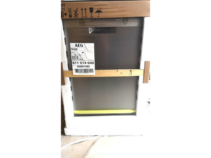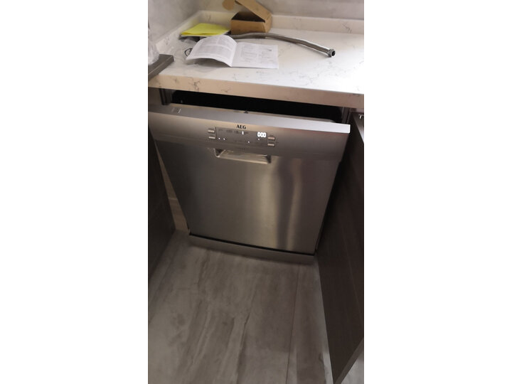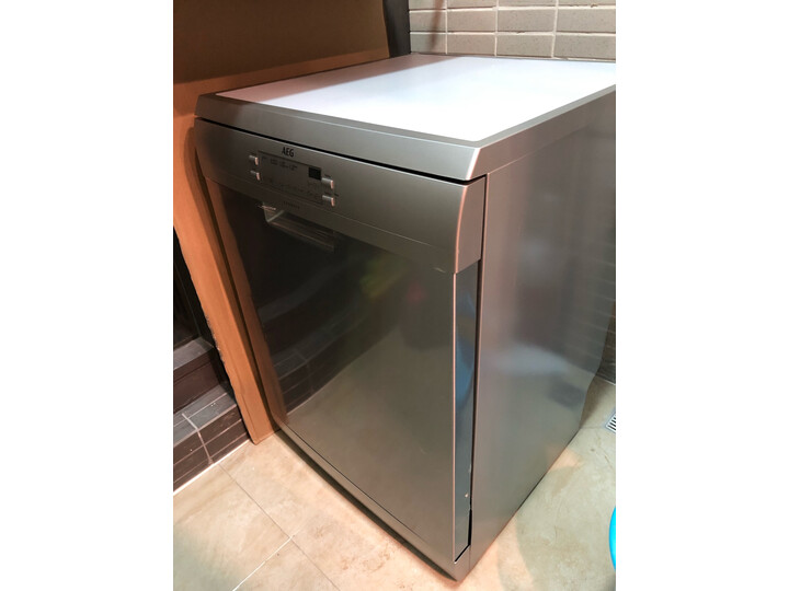 收到京东自营店的AEG洗碗机,送货上门及时态度好因厨柜还未装只打开了外包装看非常漂亮产品作工精细,希望好用。