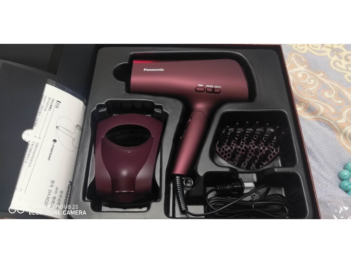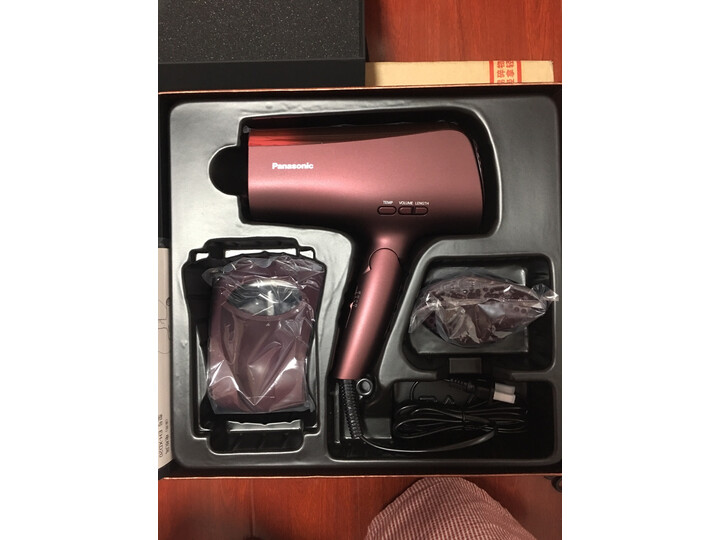 姐姐从日本回来用这种功能的吹风机,用过之后觉得很好,所以买了两个,一个自己用,一个送朋友。前天买,今天就收到了,快递很快,关注这块产品很久了,相信松下的黑科技,京东的活动很给力,赠品一起收到了,期待能拿到饰品盒和T恤。