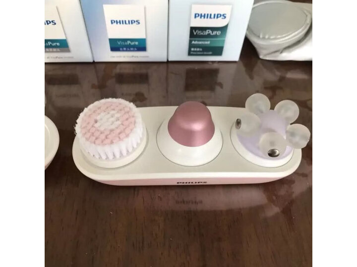 618预定活动很给力,老公直接给我买了。今天刚收到货立马打开使用了一下,我皮肤比较敏感,最近又有点发痘痘,非常需要好好清理清理~这个敏感肌肤的刷头非常柔软细腻,超级舒服,洗的也很干净!按摩头配合乳液和水,感觉皮肤饱饱的喝满了水~最方便的是眼部按摩的头子,期待几个月后的效果!最后晒下家里飞利浦个人护理全家福。618特价的时候买的,买的时候还送一个滋养仪,性价比超高。刷头非常柔软,刷在脸上非常舒服,但是洗脸的程序感觉有点短,分开三个部位,每个部位15秒;按摩头容易卡住头发;提亮头感觉非常冰凉。总的说来,非常值。