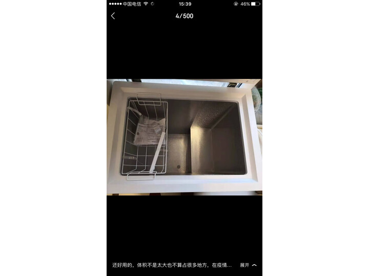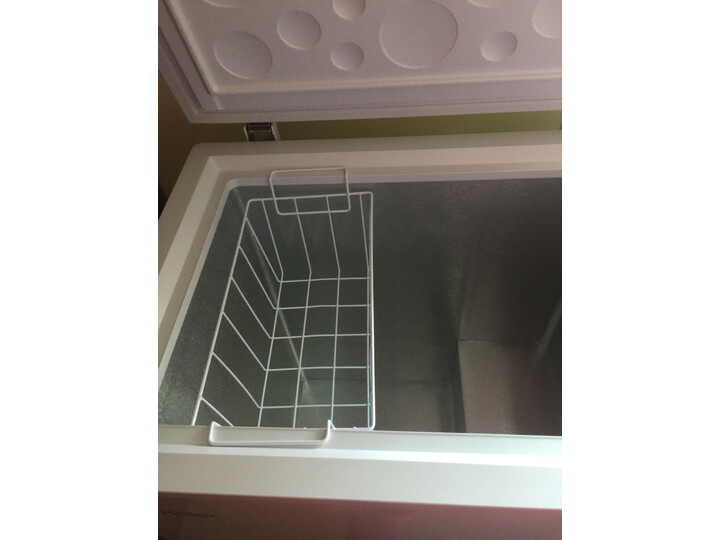 冰柜今天到家,整个外形特别好看,圆角设计,不占地方,但是里面空间很大,非常满意哦。性价比很高,很实用。占地面积不大,能把一头猪放进去。对于冷冻容量需求大的家庭而言是个不错的选择。噪音不算大,但是和旁边的松下冰箱比起来还是很明显的。