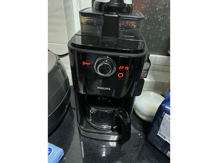 出去旅游买了一些咖啡豆,可以发现没有咖啡机,怎么磨咖啡豆呢?于是赶紧京东上挑了个咖啡机,第二天就到货了,送货超速度神速,老公挺满意的,已经用了一段时间了,样子也挺简洁好看的,咖啡冲泡的也挺到位的,飞利浦品牌的相信能用住。