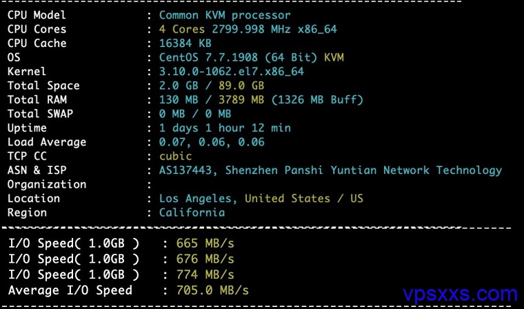 XXMhost上面最高配套餐测试结果(商家提供):