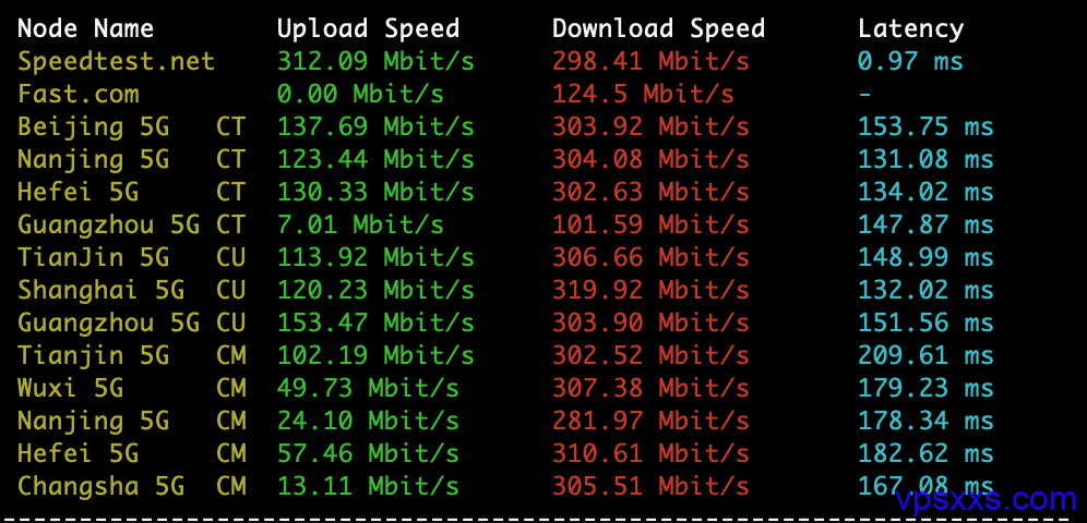 XXMhost随机筛选国内节点测试访问速度,表示国内访问我们的云主机速率