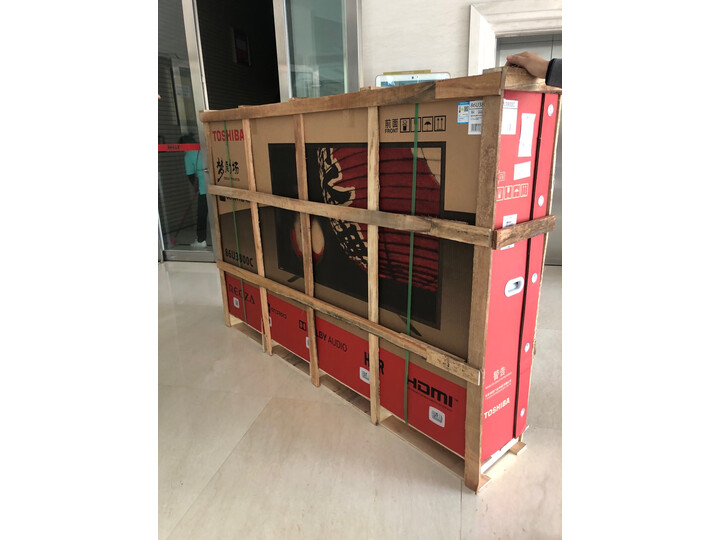 电视真的很大,很爽,视觉效果相当好,音质也够震撼对于这个价位,挂在墙上高端大气上档次。瞬间提升了房间内的视觉冲击;分区控光很不错,全黑背景下就像没开电源一样。播放4k视频画质清晰,颜色艳丽,层次丰富,黑位很黑,暗部细节也能看清,连接歌华高清机顶盒,直播可以接受,高清频道效果更好。只是自带系统偶现卡顿,希望后期升级优化固件;非常不错了,符合期待,完美的体验!毫无疑问为万元内电视性价比之王,160智能背光分区、90%广色域、HDR10&Dolby Vision+Dolby A**os&DTS、120HZ刷新率、MEMC动态补偿,除了画质芯片之外,这个价位高端电视的配置该有的全都有!硬核!!!第一天下单,第二天完成送货和安装,京东送货可靠有保障,东芝安装售后有保障,电视很满意,期待入住后效果。外形外观:很普通低调,薄,但是装上,支架和墙还是有距离的。运行速度:内存2G够用挺流畅屏幕音效:屏幕色彩艳丽,强于一般电视,音效室内足够用,但是看电影听音乐还是不能喝外置音响比较,自己安装一套飞利浦外置音响,切换着来,比较好。尺寸大小:这个看距离吧,我的正好。安装同步:送货第二天到,安装预约,一般24小时完成。功能效果:这是京东定制网络销售的机器,有一定的优势,比较符合一部分人心里。机器稍微有点厚,菜单设置比较简单,使用方便。第一次开机超级慢,来回好几次,后面就好了。开机没广告