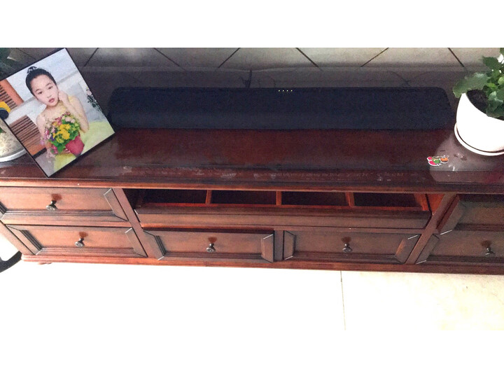 雅马哈的品牌值得信赖,效果不错低音的效果也很明显。有刮痕 有cha过的痕迹 也懒得去换了 快递员风里来雨里去的 原谅一下又如何刚刚搬新家。这个回音壁好正,家里变成了***院了。打游戏的表现音效很很好,非常推荐。外观:雅马哈2千以下的都是布面,个人觉得外型比107和108好看。网布日常使用要注意防尘和吸尘。音质:我是索尼8566f电视,它比电视音质好很多,入门级看电影不错了。听歌高音不足,人声不够清晰。技术人员推荐用光纤连接,兼容性更好,不过我的电视用HDMI arc接口也正常使用,比光纤好在可以跟电视音量和开关机同步。要注意的是买2.0版本的HDMI线才支持arc,技术人员说的。唱K的话就不建议了,还是功放配大尺寸音箱音量大,唱得爽。
