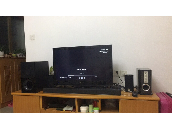 索尼电视配合回音壁音响,完美搭配。。。看蓝光电影是一种享受回音壁的音质杠杠的,搭配索尼电视真的是绝配索尼回音壁这是换的第三个,对比了一下,一分价钱一分货。这个效果最好,低音混重,高音喇叭清晰。看电影有电影院看电影的感觉,四面八方都有声音出来。听歌效果也不错。索尼**好!9500g配9000f真的很棒!