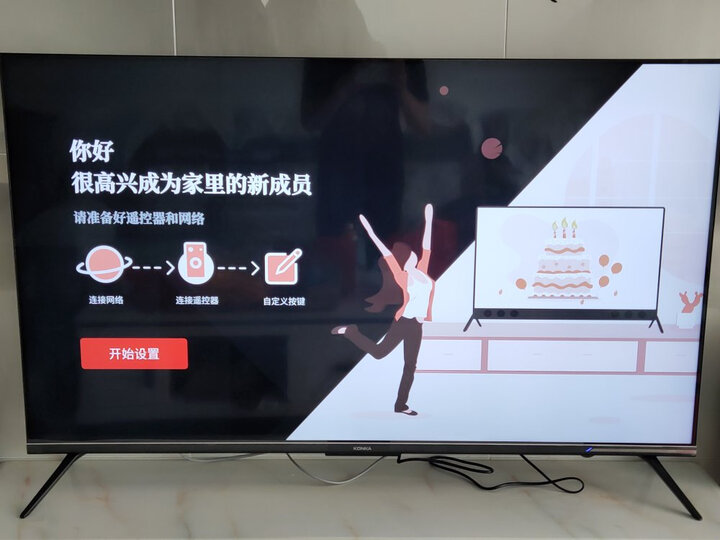 首先客服态度很好,有问必答物流也很快,昨天下单第二天就到了,十分给力。安装师傅上门也快,很快就安装好了,是一次满意的购物外形外观:很薄,很时尚,边框也很小视觉效果很好,看着精美。运行速度:算是非常快了,2加16G很够用的。看啥都可以,时间长了会不会变慢再说。屏幕音效:总体还是不错的,性价比真高。尺寸大小:买的55寸的,很大。放卧室障眼,放客厅合适哦。建议根据房间大小购买。安装同步:自己装就可以了,很简单,挂墙上就找厂家派师傅来,送的底座不是很稳可能太大的原因,建议装墙上稳点啊。功能效果:功能强大,自带软件很方便,联网就能看哦。颜色也很饱满,说是4K应该是哦。总体还是很满意,仅做参考实用为主。电视屏幕很大,大内存,运行速度快,颜色艳丽,显示清晰,易于操作,孩子很喜欢。外观漂亮,时尚流线外形,音效震撼,看起来高端大气,价格合理,品质可靠,值得消费者信赖,京东购物平台有保障,支持国产大品牌康佳。运行速度:快屏幕音效:屏幕超清晰,音质很棒外形外观:色酷炫 尺寸大小:坐的地方3米左右距离55寸很合适